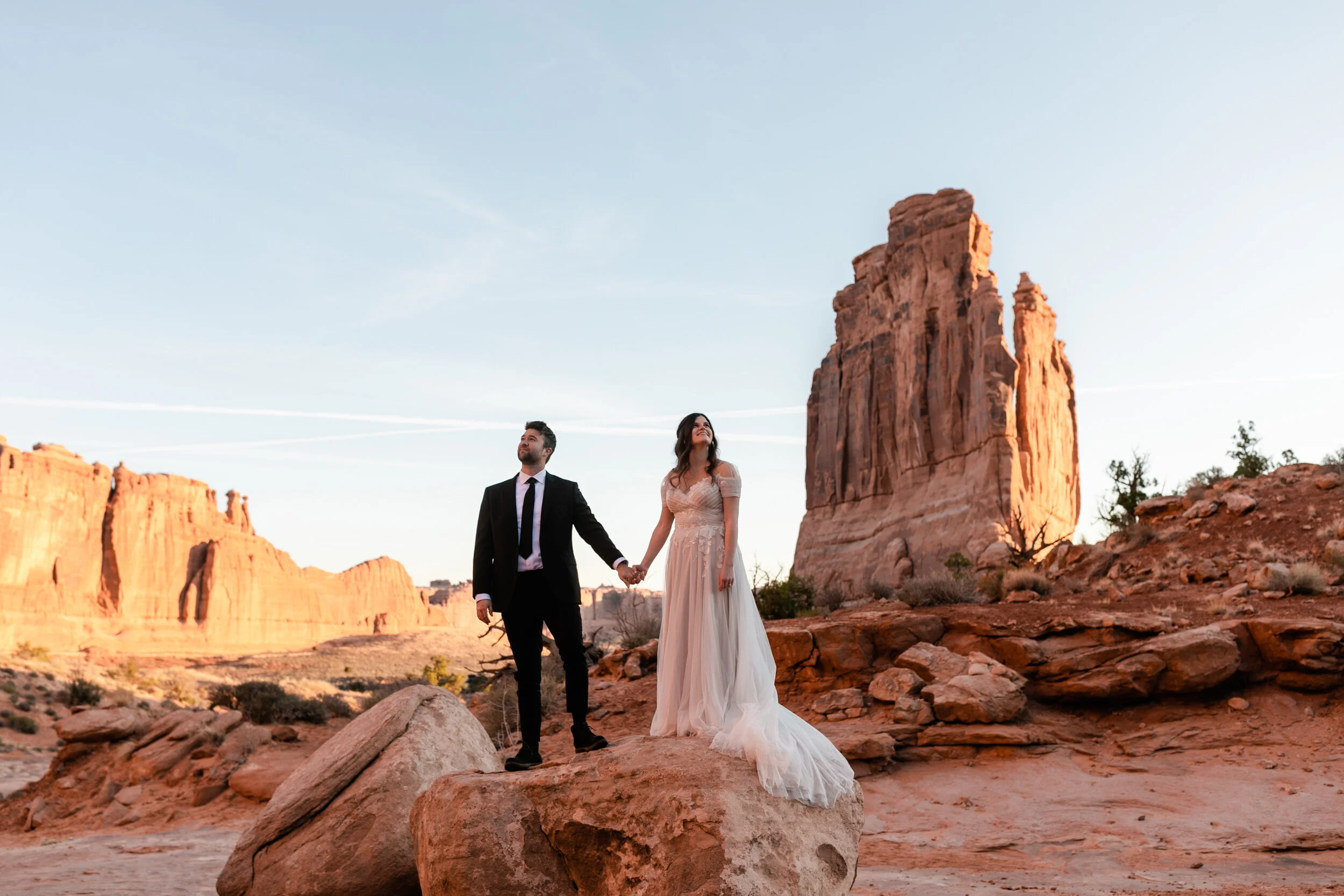 Covid friendly small wedding in Moab, Utah with sunrise in Canyonlands National Park
